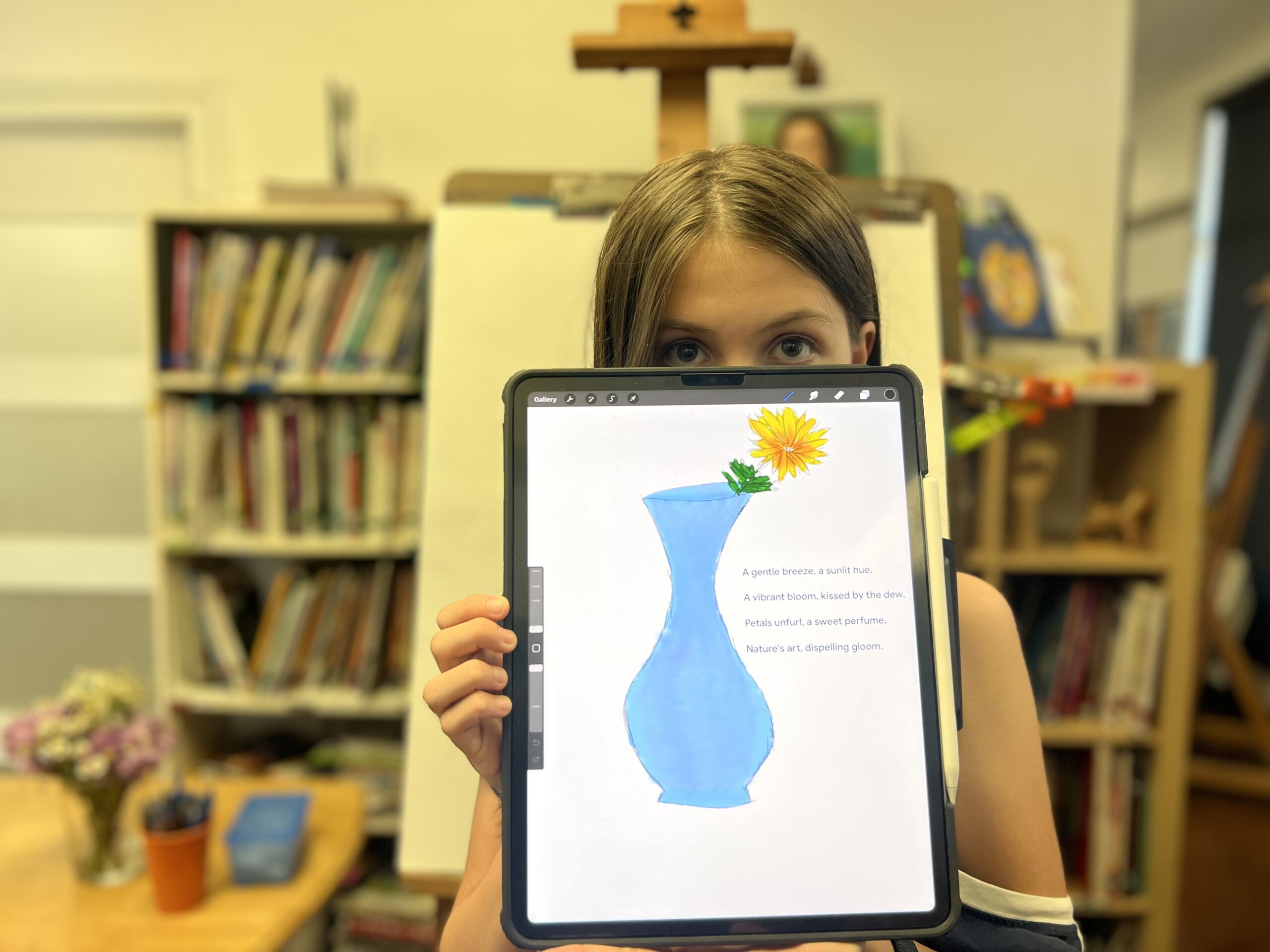 Each class invites students to explore both traditional art techniques—like drawing, watercolor, and tempera—and digital illustration and animation using tools such as Procreate. Because classes are taught live via Zoom, you’ll have the chance to ask questions, receive guidance, and connect with your instructor and peers in real time.