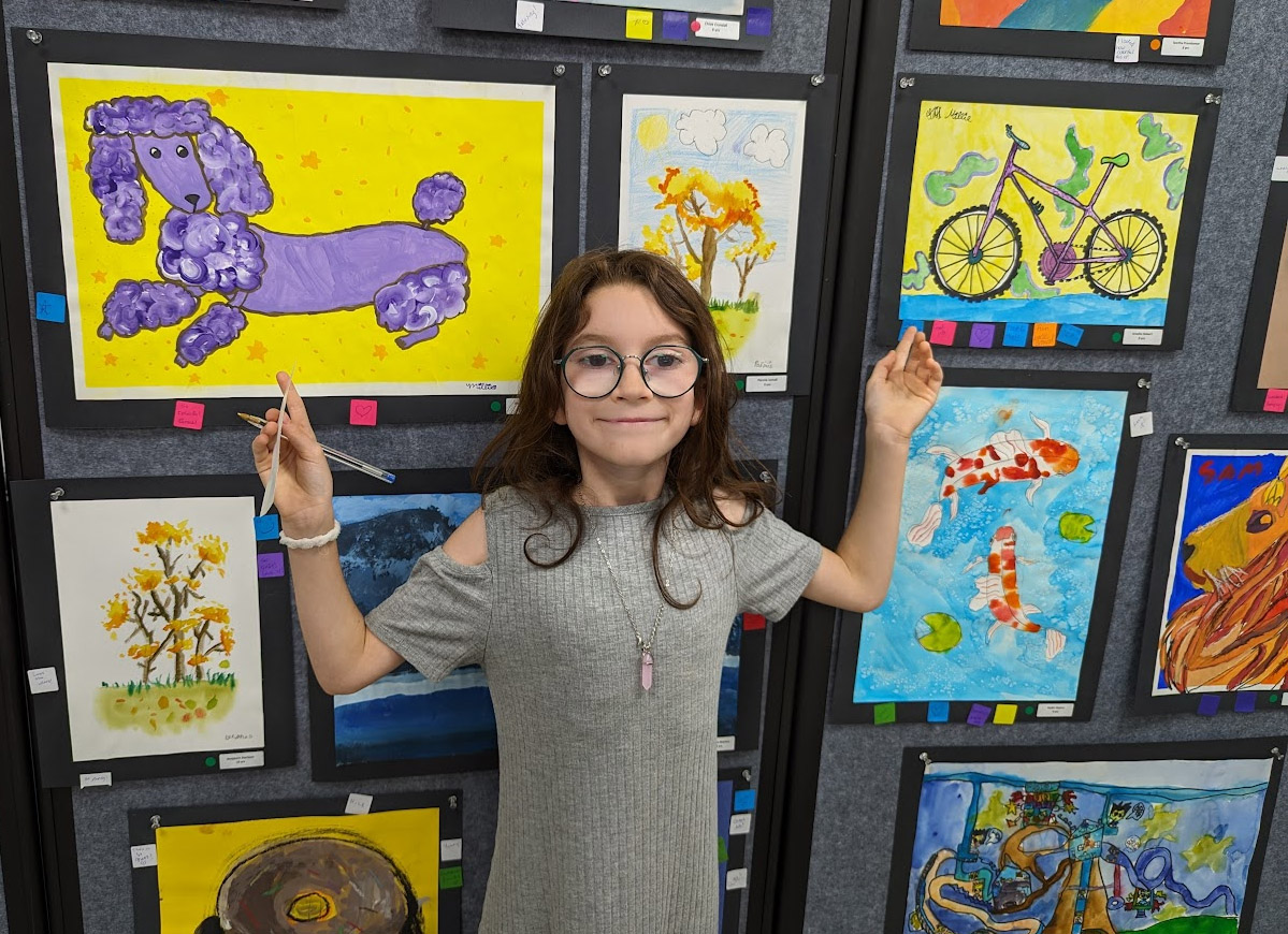 Now, at 10 years old, Millie’s progress is clear. From her early colored pencil drawing of a dog with a watercolor background to her latest piece—a striking dog in white charcoal on black paper with bold, expressive brushstrokes—she’s come a long way. Not only has she grown in skill and confidence, but she’s also one of those few who won’t stop drawing at 10, when many begin to doubt themselves. Millie is proof that with encouragement, guidance, and practice, young artists can keep growing and creating.