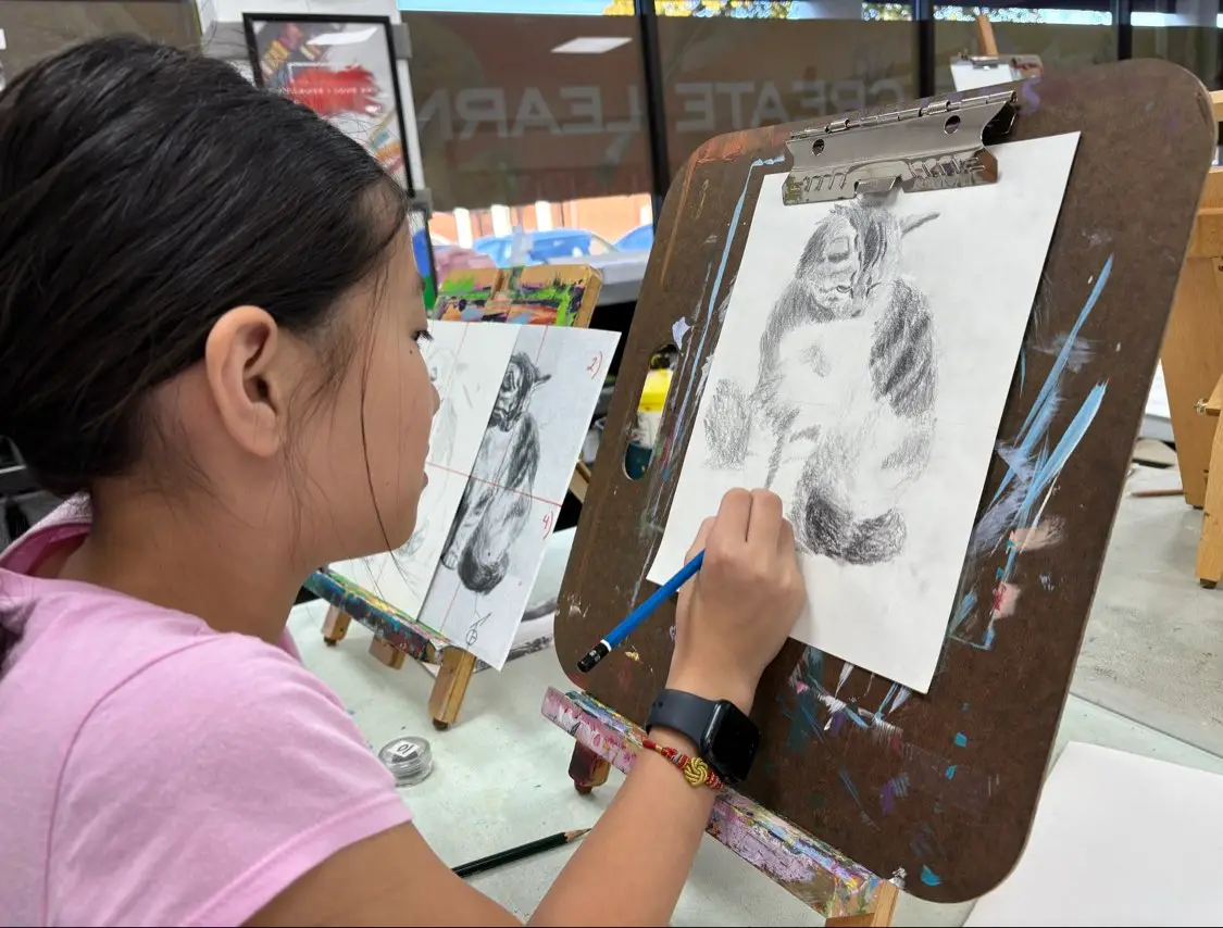 Our 9–12-year-old students are in an exciting stage of growth—developing stronger observation skills, refining techniques, and learning to bring their ideas to life with confidence and creativity. In this showcase, you’ll see them deeply focused on their artwork—sketching, shading, mixing colors, and experimenting with different materials.